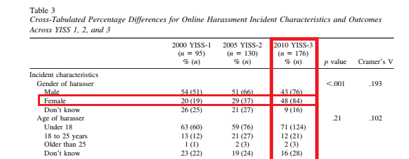@Nero You missed a spot, study shows women more likely to be harassers online than men http://www.unh.edu/ccrc/pdf/Online%20Harassment%20in%20Context.pdf …pic.twitter.com/JwT7KitcSM