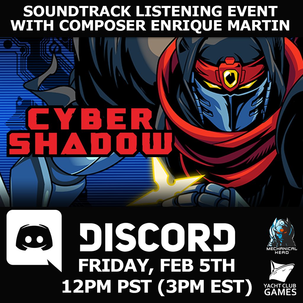 Let’s share some stuff about the Cyber Shadow soundtrack next friday! Come join us!https://twitter.com/YachtClubGames/status/1357080712080314368 …