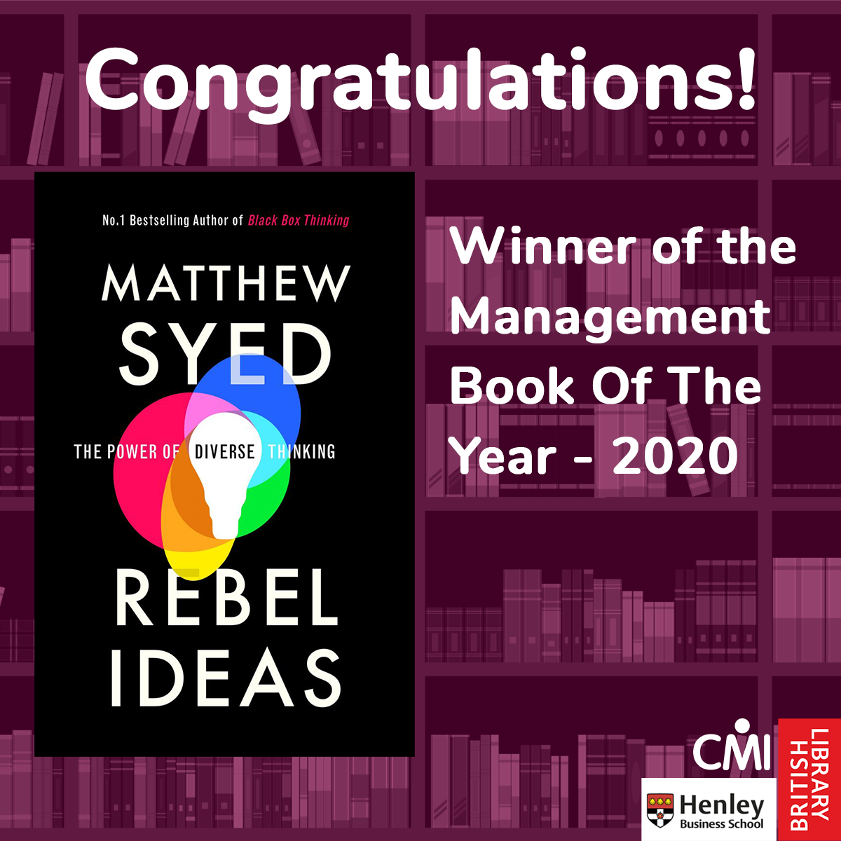 @matthewsyed's Rebel Ideas as Management Book of the Year. Great pair of books for your lockdown staycation at your mum's house.https://twitter.com/cmi_managers/status/1282608465282846721 …
