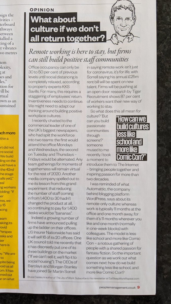 @brucedaisley in@PeopleMgt magazine. Bringing people together for four weeks a year is a very interesting proposition.#PostCOVID19#OfficeSpacepic.twitter.com/6g6Yeu8S87