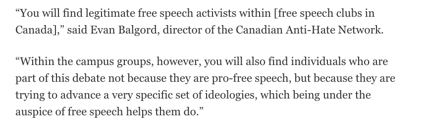 I spent the last couple months studying how university free speech speech groups attract extremists and radicalize students. Here are some ~hot takes~ about my reporting that no one asked for 1/https://www.ubyssey.ca/features/a-splintered-movement-far-right-on-campus/?ref=frontpage …