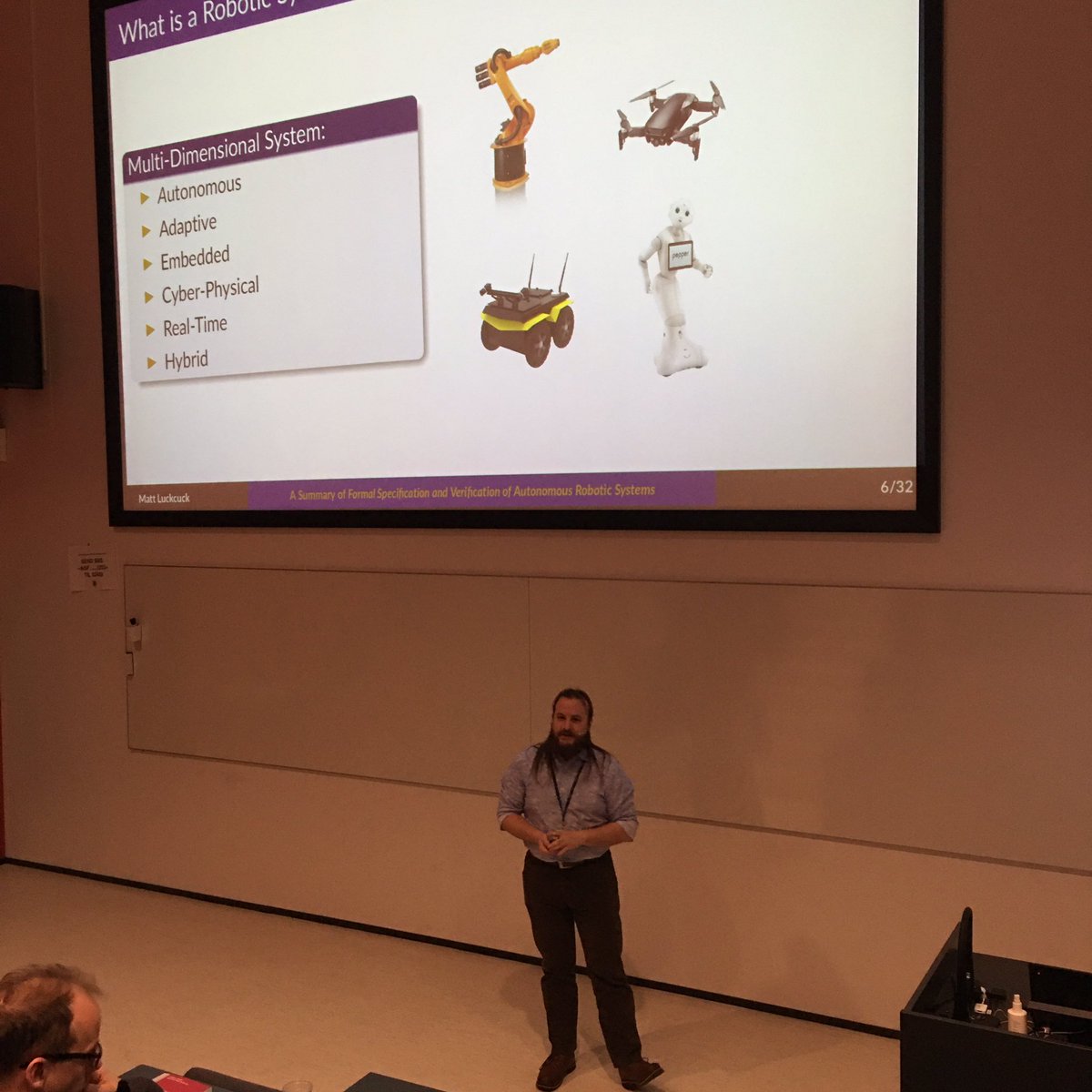 @MattLuckcuck presenting a survey on formal specification and verification of autonomous robotic systems. Journal first at@iFMconfpic.twitter.com/yOC3cBxrJQ