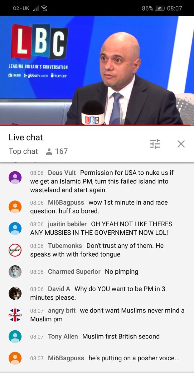 How does youtube and let this happen. Live chats on political broadcasts never fail to make me feel sickpic.twitter.com/pY3NvpmR4W