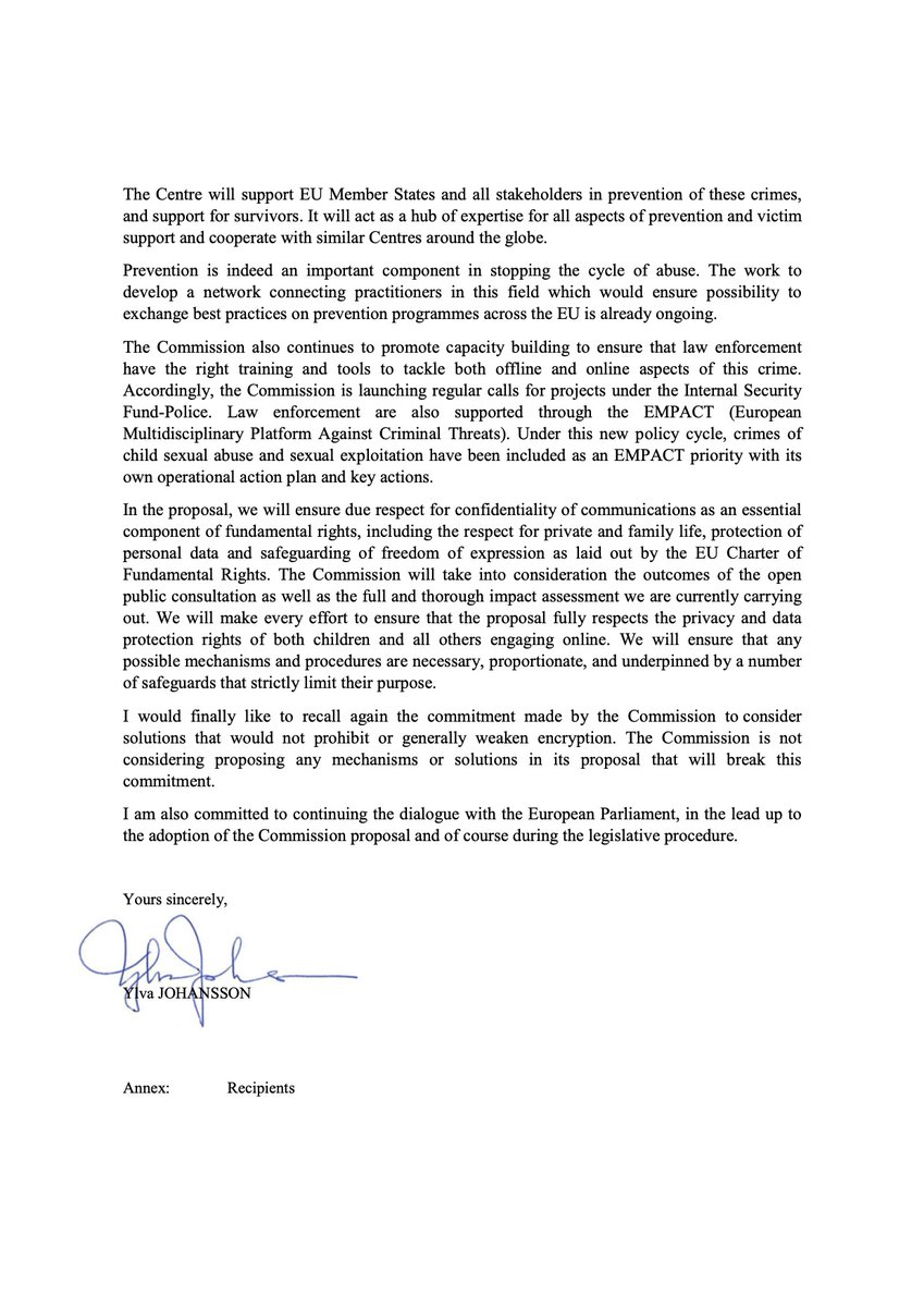 EU Commission defends its intention to oblige e-mail, messaging and chat providers to search all private messages for allegedly illegal material and report to the police (