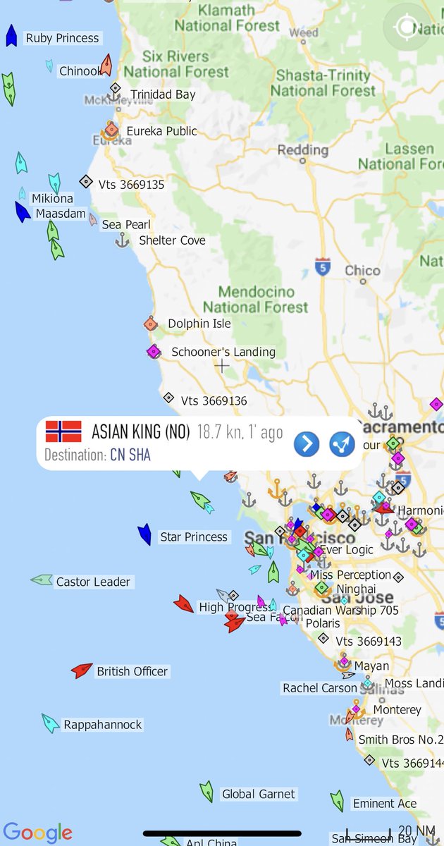 Asian King has crossed the San Francisco Bay and is now being berthed at Pier 80.pic.twitter.com/ZWHzVvDRvA