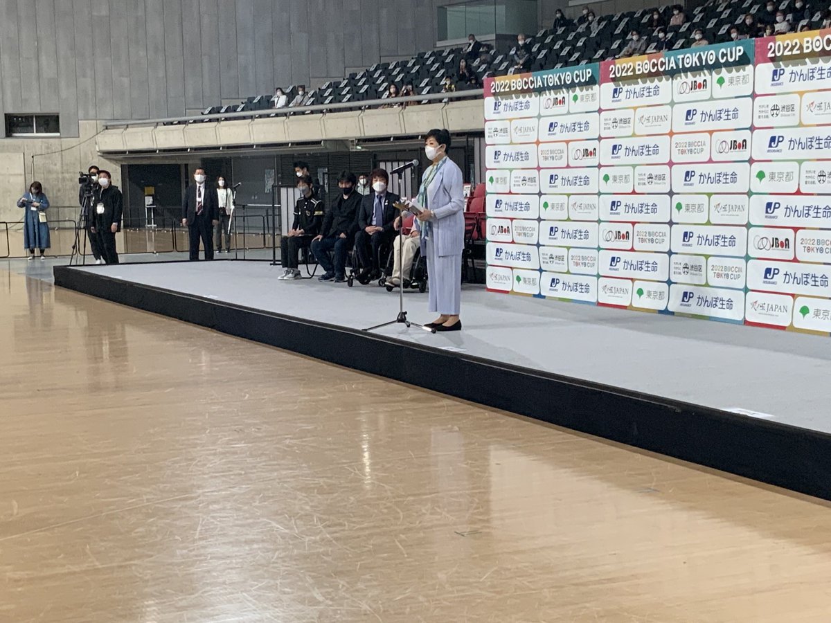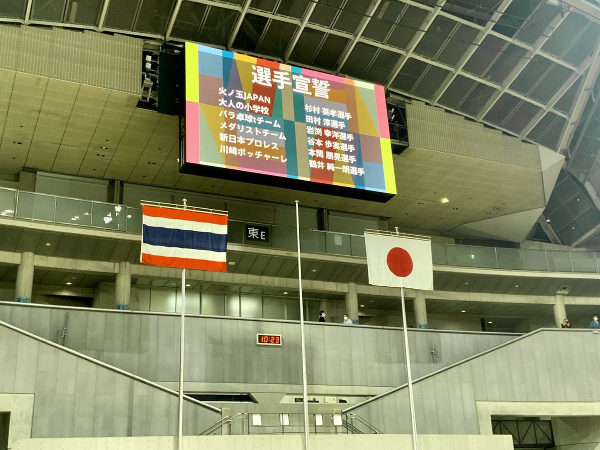 東京体育館での「第6回ボッチャ東京カップ」開会式。2020大会日本代表「火ノ玉JAPAN」や強豪タイ代表、田村敦さん率いるチームや新日本プロレチームなど、共生社会を具現する大会に。本間朋晃さんのど迫力選手宣誓声に会場が沸きました。pic.twitter.com/HhhVwsgwQh