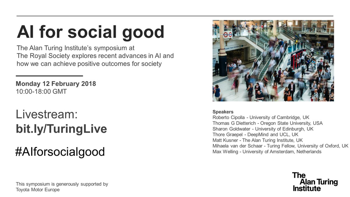 #AIforsocialgood happening at@royalsociety. Bookmark & tune in between 10:00-18:00 GMT http://bit.ly/TuringLive . Info & agenda: http://bit.ly/2Ee0taJ pic.twitter.com/RdjAPr2R92