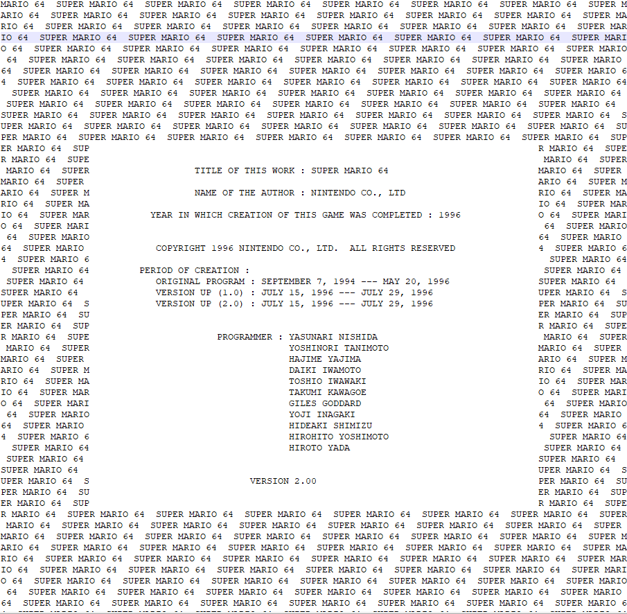 thanks to a file called "copyright" in the super mario 64 folder we now know exactly the days when sm64 development started and ended the project began on september 7, 1994, and was finished on may 20, 1996pic.twitter.com/3QL4GKrlE3