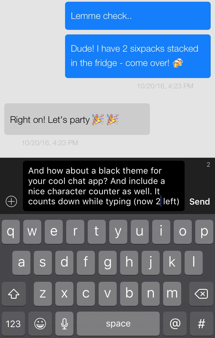 The keyboard can be completely styled - here's a dark version with a remaining-chars counter!pic.twitter.com/cwAC9lLhV3