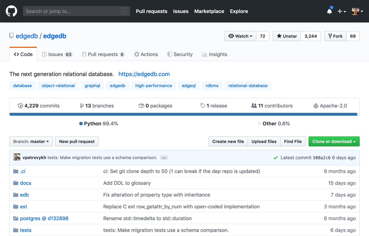 @edgedatabase! Slick design, refreshing API, and packed with modern features. Python client has async built in! GraphQL server tied to the DB schema is built in! And the docs are a breeze: https://edgedb.com/docs . Congrats@1st1 and the MagicStack team