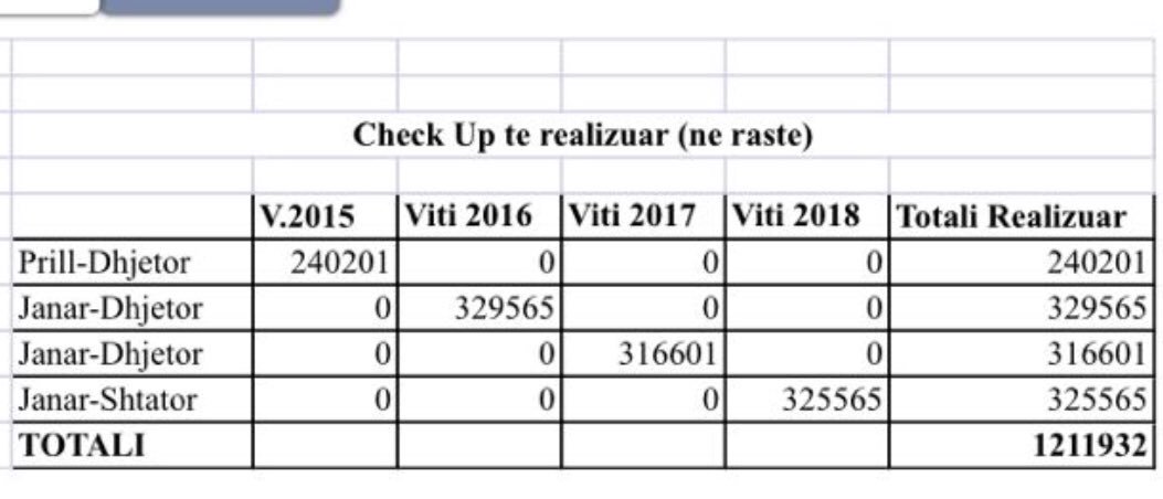 Nderkohe shteti i paguan privatit cdo vit cmimin per 575,000 analiza. Pra po ti mbledhim deri tani, shqiptaret kane pagua per rreth 600,000 check up qe sjane kryer kurre.