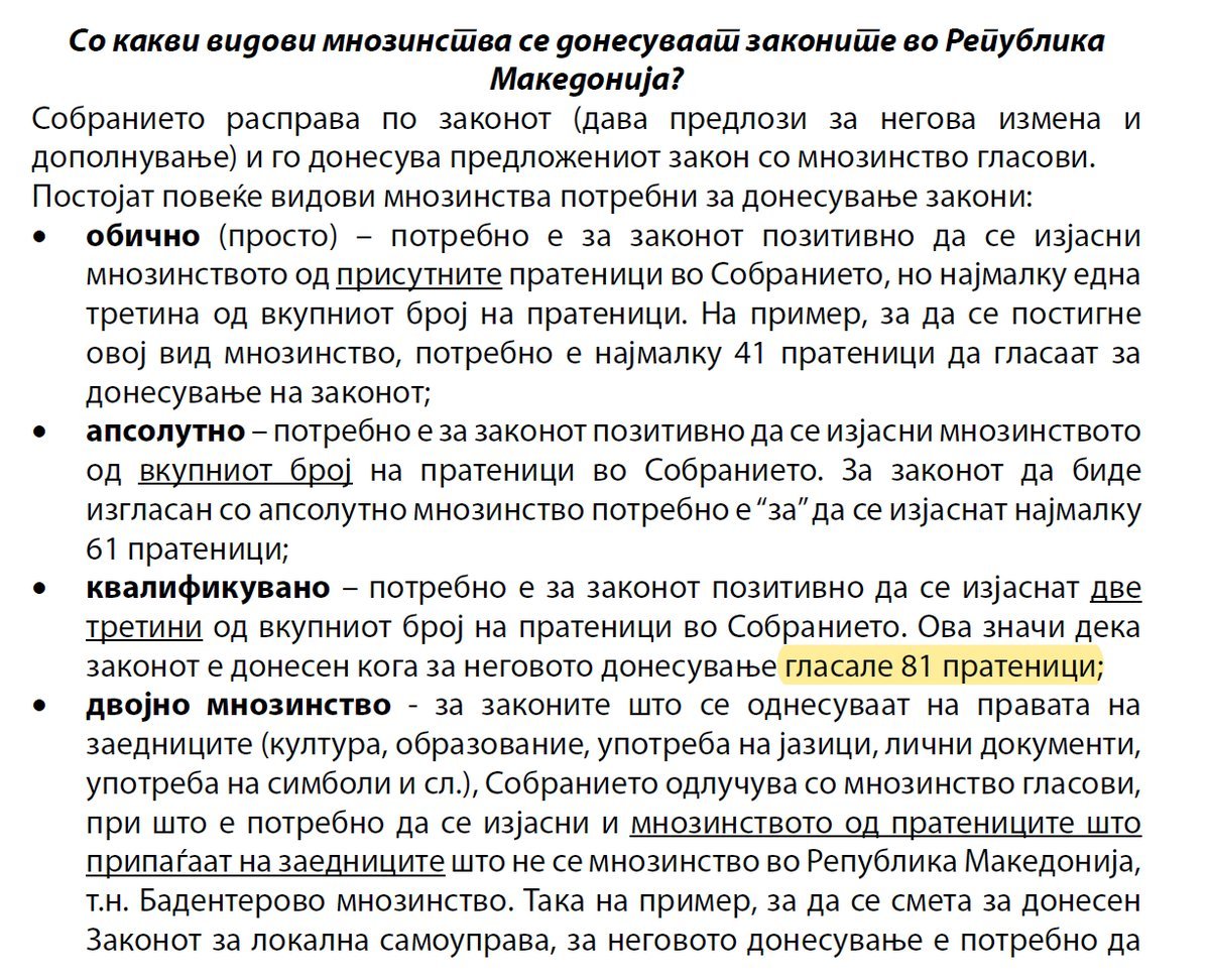 Book “We are learning the law“ published by Open Society - Soros pg. 23 - qualified majority is 81 Another illegitimate voting with 80 voteshttps://twitter.com/gemidzija_aliex/status/1053388826301906945 …