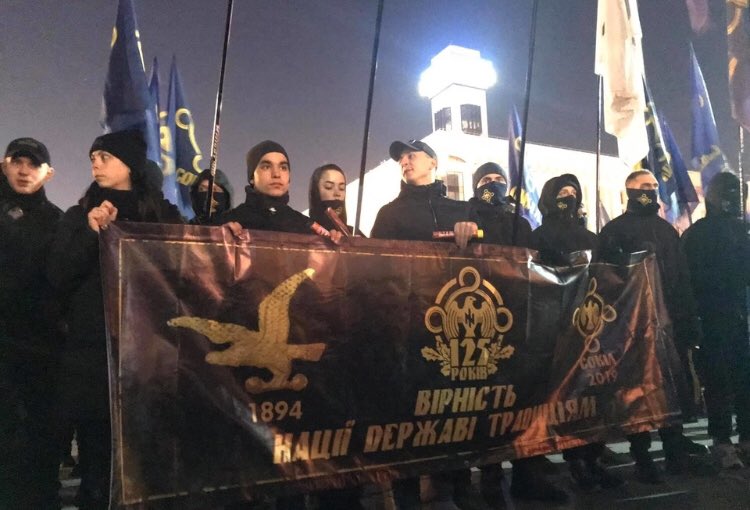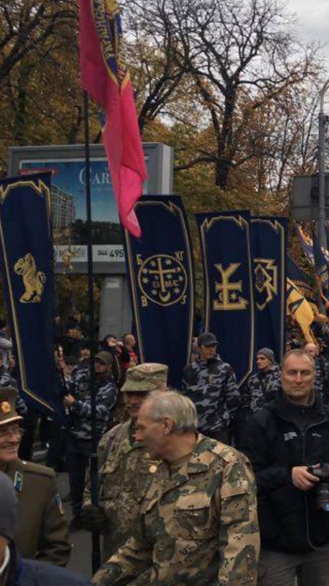 Ukrainian nationalist organization “Sokil” held rally in Kiev with neo-Nazi Wolfsangel symbol.pic.twitter.com/Uio2fbWY9U
