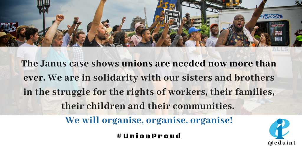 The #Janus case is not just about the U.S. Around the world unions use our collective voice to advocate for policies that benefit all working people. That includes education professionals -collectively- fighting for quality public education open to all! #UnionStrong