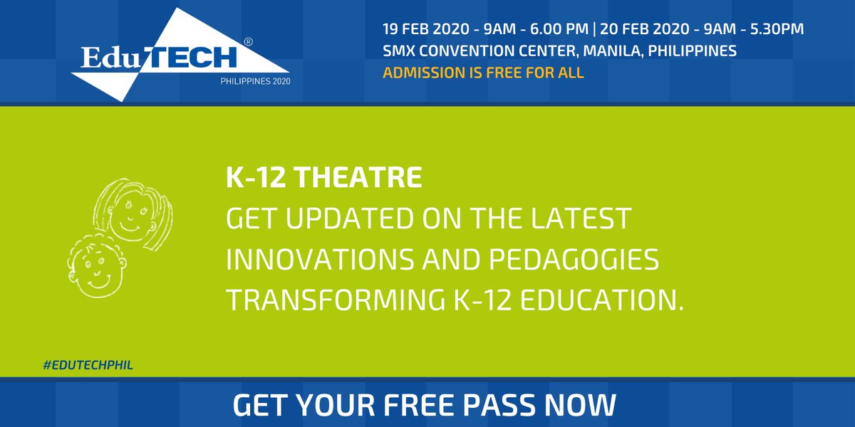 #innovations and#pedagogies transforming k-12 education at the#K12 Theatre of#EduTECHPhil on 19-20 February 2020 at SMX Convention Center, Manila. Get your free pass now to join them atpic.twitter.com/oKE25u2G0v