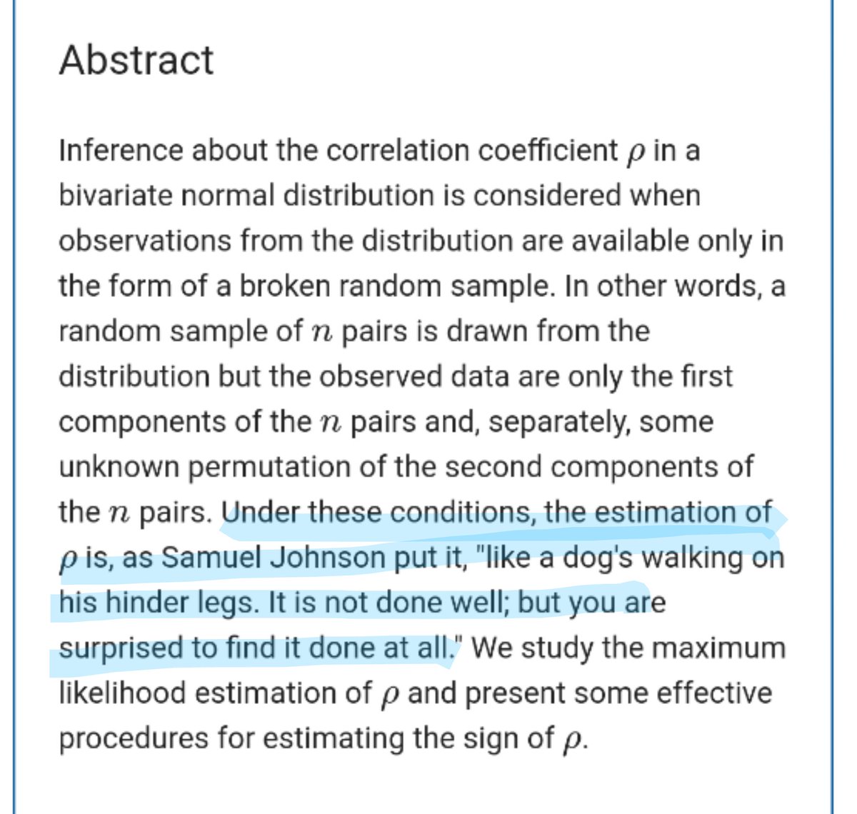 Quote from Degroot and Goel 1980 cited in that paper (https://projecteuclid.org/euclid.aos/1176344952 …): [Estimation in this setting is] "like a dog's walking on his hinder legs. It is not done well; but you are surprised to find it done at all."pic.twitter.com/apE3JX4nmd
