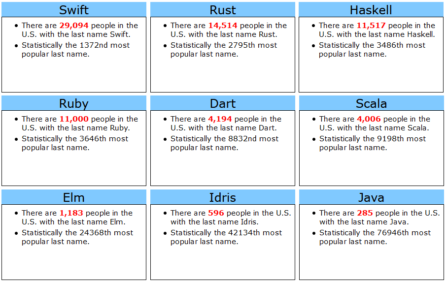 Forget the Tiobe index, @StackOverflow surveys, etc. Want to popularize your favorite programming language? Make it your legacy. http://howmanyofme.com/ pic.twitter.com/bUfLz06mh8