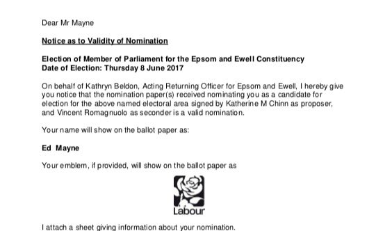 It's official. I'm the @UKLabour candidate for Epsom & Ewell. Looking forward to setting out a positive future for #themanynotthefewpic.twitter.com/IVLQtrv0bt