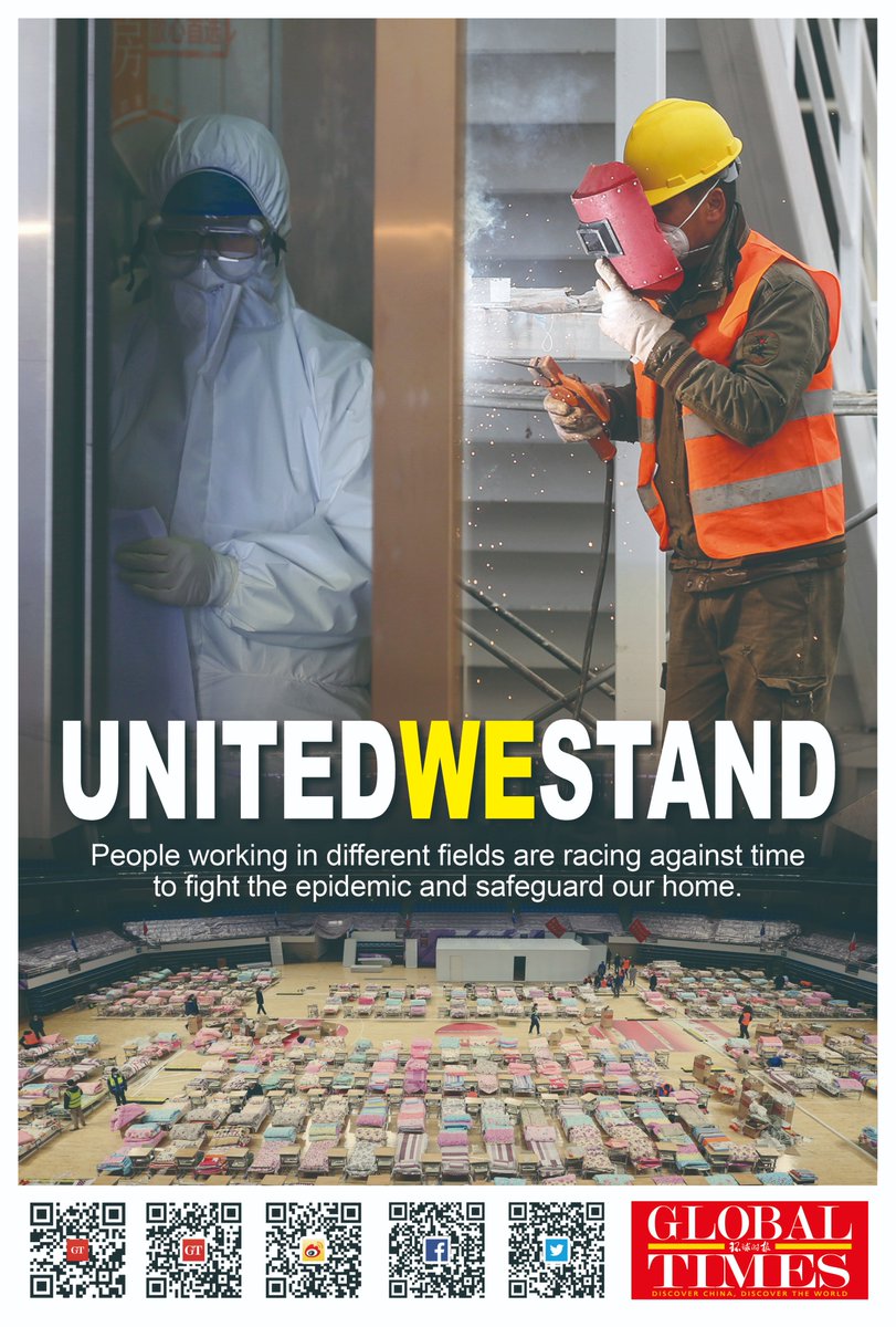 Stay strong, we stand with you, Wuhan! Thousands of medical staff across the country went to frontline in Wuhan and workers stepped up construction of more and more hospitals. People working in different fields are racing against time to fight the epidemic and safeguard our home.pic.twitter.com/WoBSAWXqVi