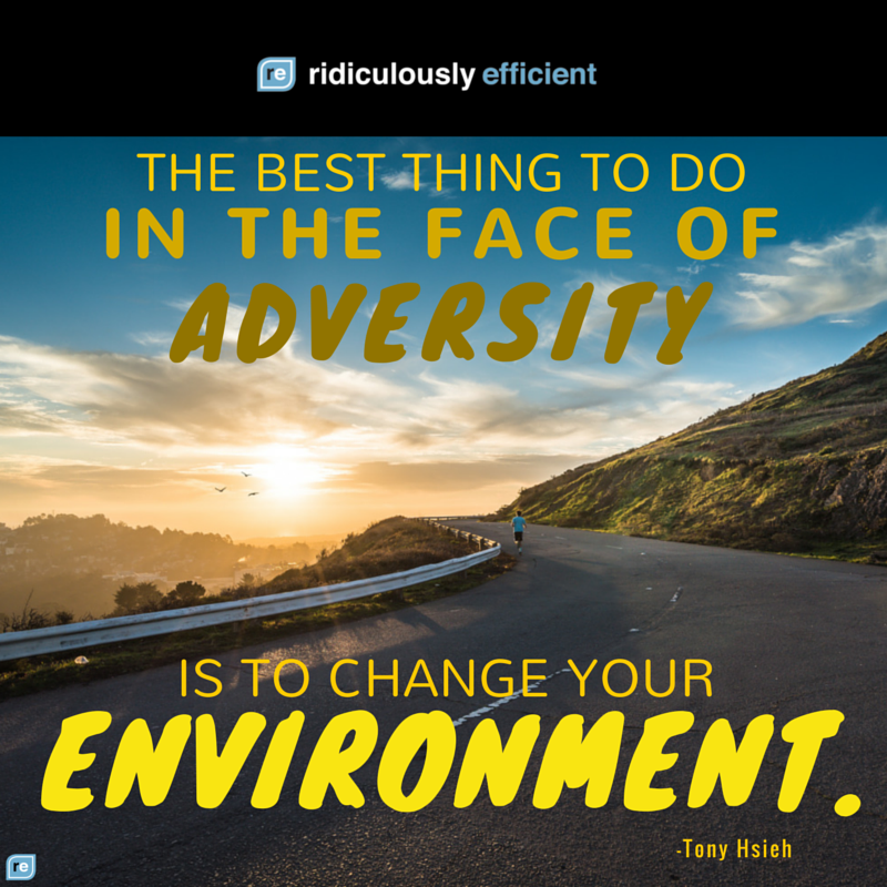 "The best thing to do in the face of adversity is to change your environment." -Tony Hsieh, Zappospic.twitter.com/NDBrarfAfr