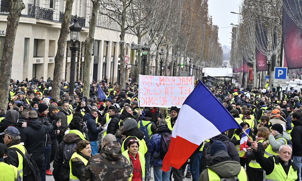 Fransa'da akaryakıt zamlarına tepki olarak başlayan, daha sonra hükümet karşıtı gösterilere dönüşen sarı yeleklilerin protestoları, başkent Paris'teki Champs-Elysees Caddesi'nde devam etti.pic.twitter.com/K0xYJ0lgR5