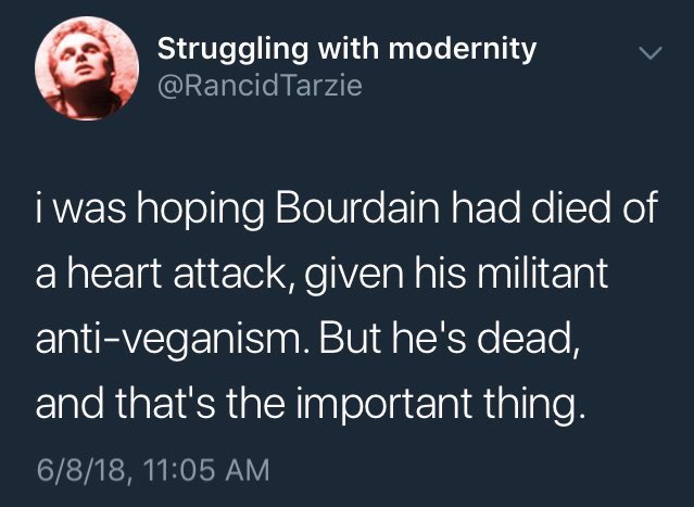 totally not the way to respond when someone dies, but why are we painting all vegans under one brush by cherry-picking a couple angry vegans comments? Seems to me just an excuse to use someone's death to dismiss veganism in general. seems just as tactless to me.