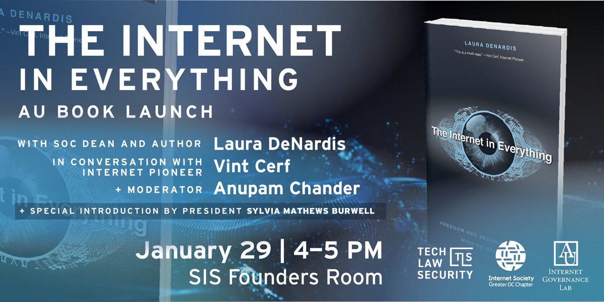@LauraDeNardis for the launch of her new book “#TheInternetInEverything,” Jan. 29 @ 4pm: http://ow.ly/4HqW50y26Fn pic.twitter.com/jMZvNWLMpc
