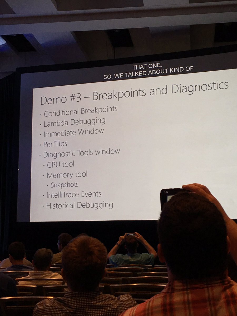 #VisualStudio debugging tips by@KayceeSue at#MSBuild - I thought I knew it all, and once again I'm proven wrong.#Build2017pic.twitter.com/7EKzImmE4m