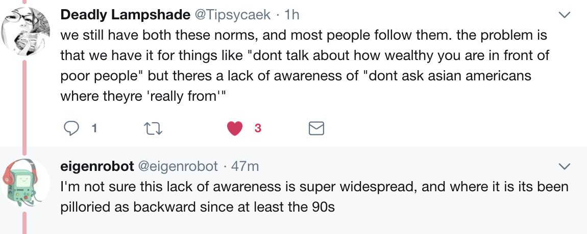 which people tho? shall I take ta-nehisi coates as representative, or john mcwhorter? etc if you want something to get information for this particular question about a distribution of experiences, you're probably not going to beat a survey