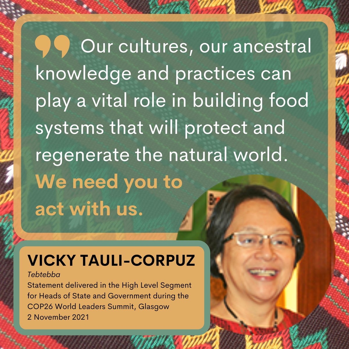 @VTauliCorpuz's full statement, delivered in the High-Level Segment for Heads of State and Government during the COP26 World Leaders Summit at Glasgow on 2 November 2021. Click the link: https://bit.ly/3BZVTC2#COP26Glasgow@NiaTero#TraditionalKnowledge#ClimateChangepic.twitter.com/ketCO2tuWs