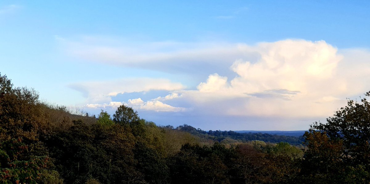 Looks like some incus/cumulonimbus over East Sussex and Kent now. Looking ESE from Holmbury Hill, Surrey. Gatwick Airport on the horizon in centre of frame. No lightning yet though...
