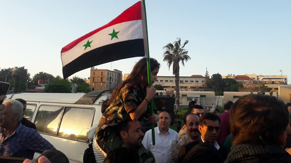 #USA#UK#France) fired from US base in#Qatar is celebrated in#Damascus government controlled area with#Russian#Iranian#Syrian and#Hezbollah flags, dancing and mocking@realRonaldTrump's strikepic.twitter.com/mlrVTL6C4DThis media may contain sensitive material. Learn more