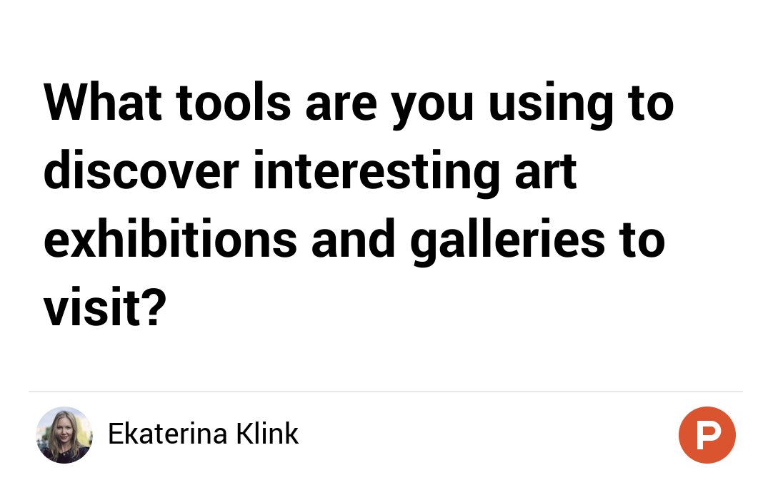 @ProductHunt. Add your recommendation here: https://www.producthunt.com/ask/750-what-tools-are-you-using-to-discover-interesting-art-exhibitions-and-galleries-to-visit …#AskProductHuntpic.twitter.com/X1v0kQuGcv