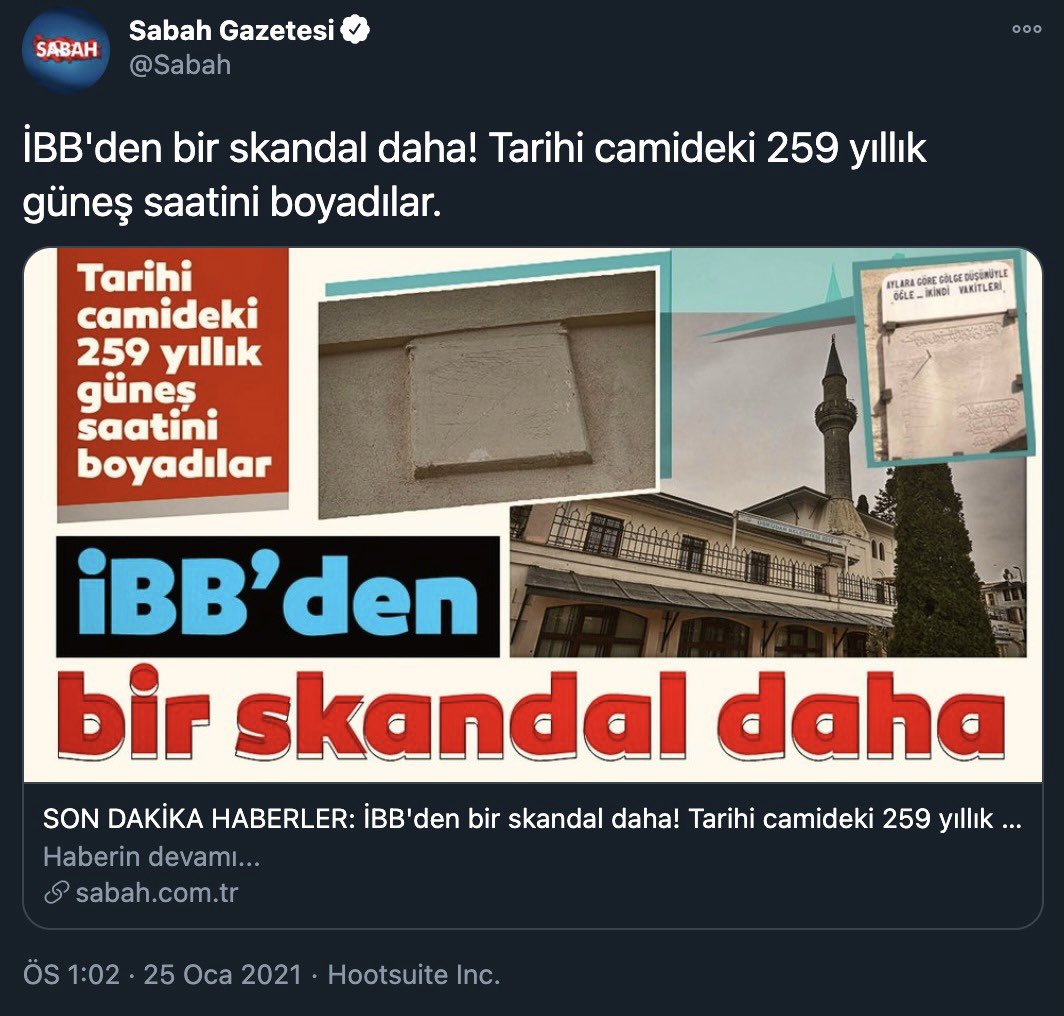 Yazamadılar, gerçek şu: 1-Yapı, Vakıflar Genel Müdürlüğü mülkiyet ve sorumluluğunda, Diyanet İşleri Başkanlığı’nın uhdesinde 2-Geçmiş dönemlerde yapılmış olan bu tahribata İBB olarak müdahil olup, restore etme talebimizi ilettik.https://twitter.com/Mrt_Ongun/status/1353667378815623169 …