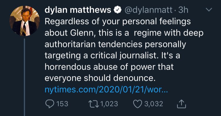 @dylanmatt’s mentions after he denounced Greenwald’s arrest.pic.twitter.com/YxKuiVhtky