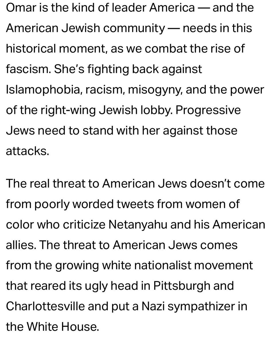 @thinkprogress Just published a piece saying@Ilhan is the type of leadership American Jews needs and then equated the jewish lobby with misogyny and islamophobiapic.twitter.com/rAtx8Ubo3u