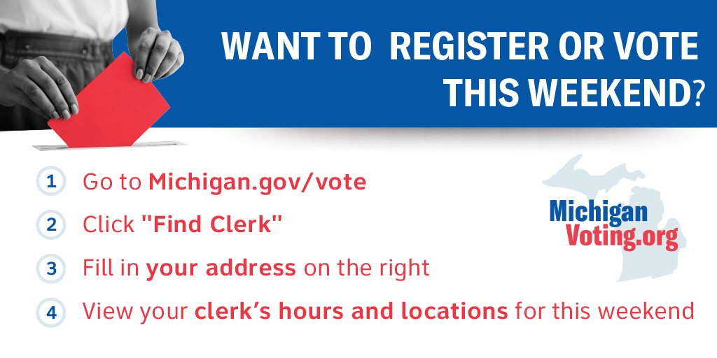 All Michigan city and township clerks offices are open for at least eight hours this weekend to allow voters more time to register to vote and cast their ballots.