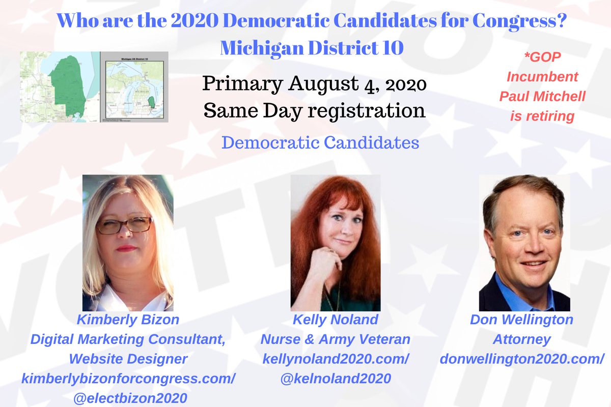 Democratic Candidates Michigan District 10 @RepPaulMitchell is leaving #MI10 Kimberly Bizon http://kimberlybizonforcongress.com/  @electbizon2020 Kelly Noland http://kellynoland2020.com  @kelnoland2020 Don Wellington http://donwellington2020.com  #DemCastMI #Congress2020 THREAD #FleeingGOPpic.twitter.com/SBxK1NL3tH