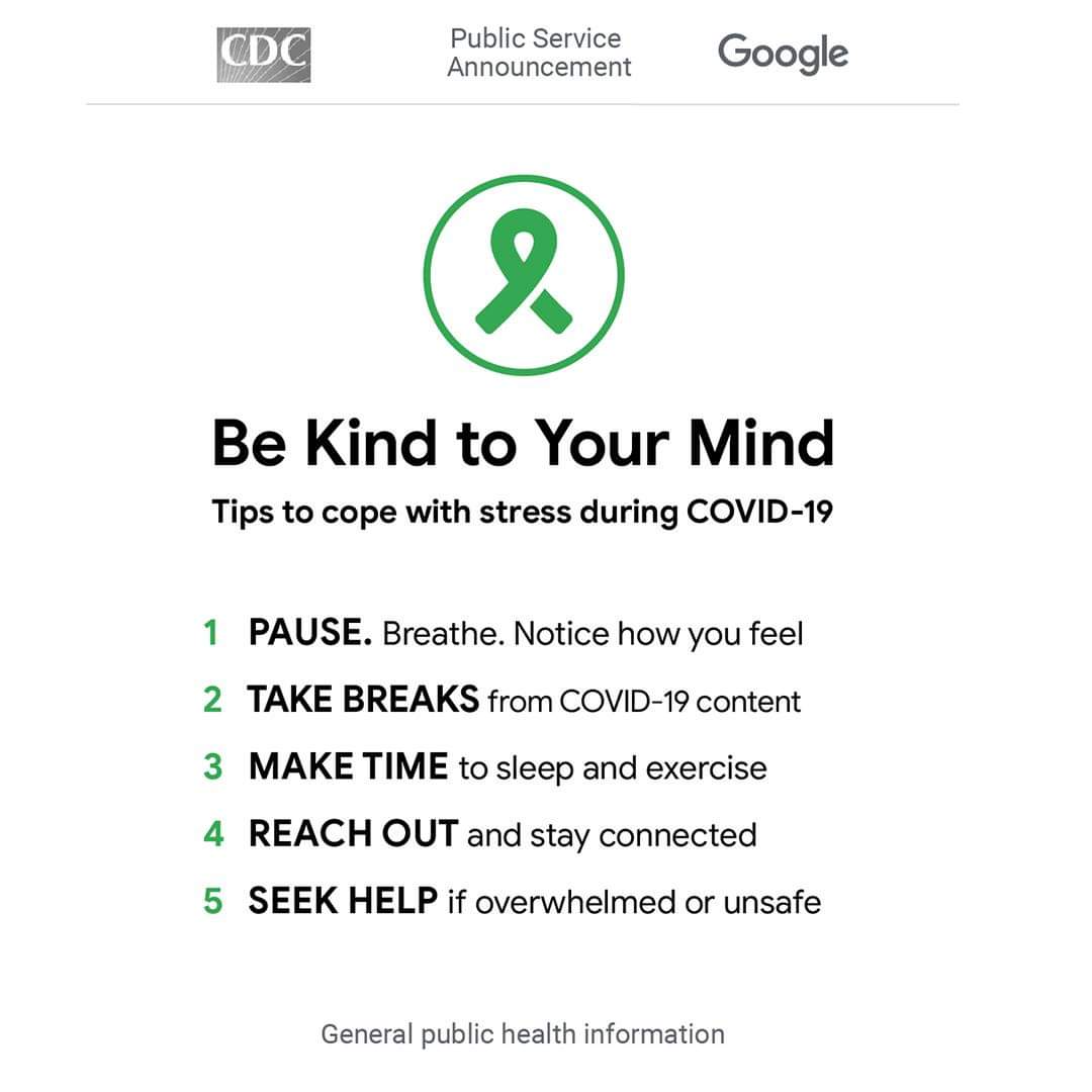 Mental Health Awareness. Some helpful tips from the @CDCgov Coronavirus does not care what political affiliation you are, nor does mental health problems. Let us work together to come up with solutions and STOP tearing each other down.pic.twitter.com/U9R0QGk48O