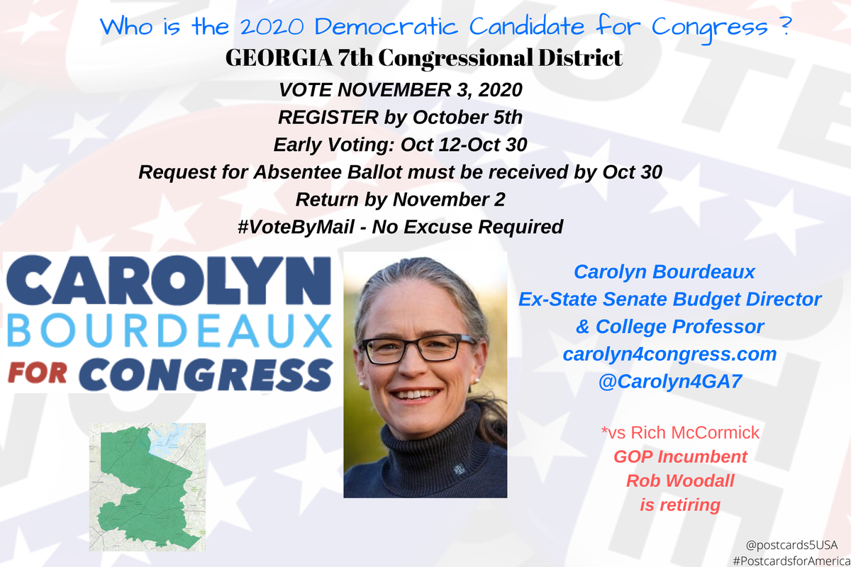 GA7 Democratic Candidate GEORGIA 7th CONGRESSIONAL DISTRICT #GA7 Carolyn Bourdeaux Ex-State Senate Budget Director, & College Professor http://carolyn4congress.com  Donate here https://secure.actblue.com/donate/carolyn_website … @Carolyn4GA7pic.twitter.com/zsONIVuuhh
