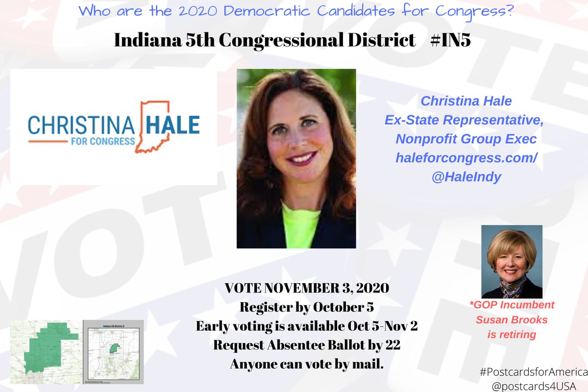 IN5 Democratic Candidate for #IN5 INDIANA 5th Congressional District CHRISTINA HALE @HaleIndy http://haleforcongress.com  Contribute https://secure.actblue.com/donate/haleweb2020 … GOP @SusanWBrooks is leaving #NoSafeSeats #DemCastIN #Congress2020 #HoldTheHouse THREAD #PostcardsforAmericapic.twitter.com/FZmMnTqCTT