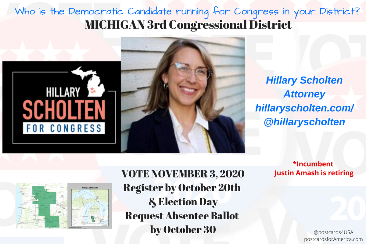 MI3 GOP Incumbent Justin Amash is leaving Democratic Candidate Michigan 3rd Congressional District Hillary Scholten http://www.hillaryscholten.com/  Contribute here https://secure.actblue.com/donate/helphillary# … @HillaryScholten #NoSafeSeats #Congress2020 THREAD #FleeingGOP #PostcardsforAmericapic.twitter.com/vGTRN7LtJ9