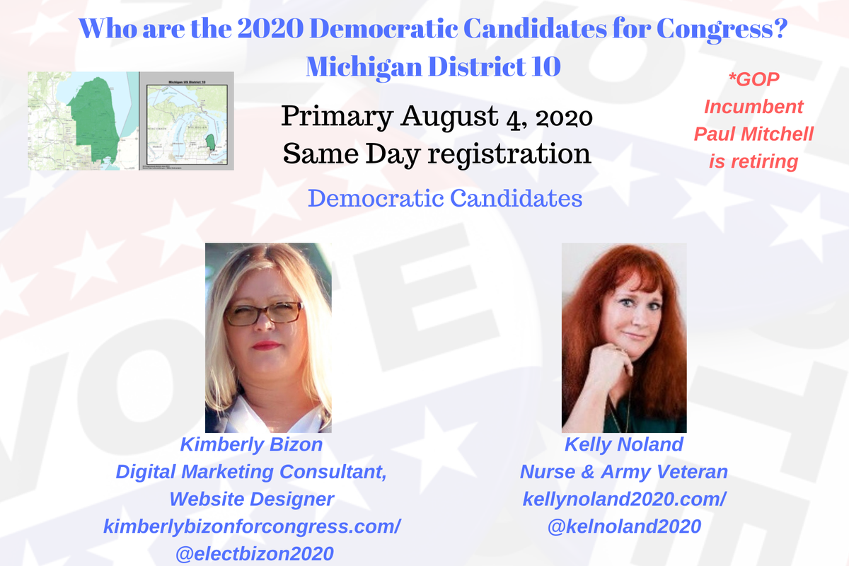 MI10 Democratic Candidates Michigan District 10 @RepPaulMitchell is leaving #MI10 Kimberly Bizon http://kimberlybizonforcongress.com/  @electbizon2020 Kelly Noland http://kellynoland2020.com  @kelnoland2020 THREAD #FleeingGOP #PostcardsforAmericapic.twitter.com/ORM4VQmkiu