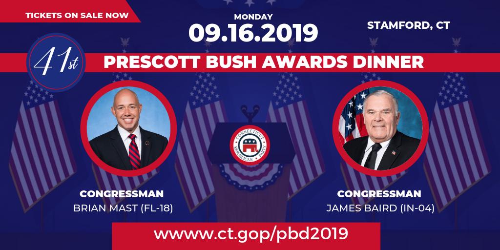 @RepBrianMast and@RepJimBaird will be coming to#Connecticut for the 41st Prescott Bush Awards Dinner on Monday, September 16th! Click the following link to get your tickets. https://secure.anedot.com/connecticut-republicans/pbd2019?source_code=social …#CTPolitics#LeadRightpic.twitter.com/6bzczXI5dH