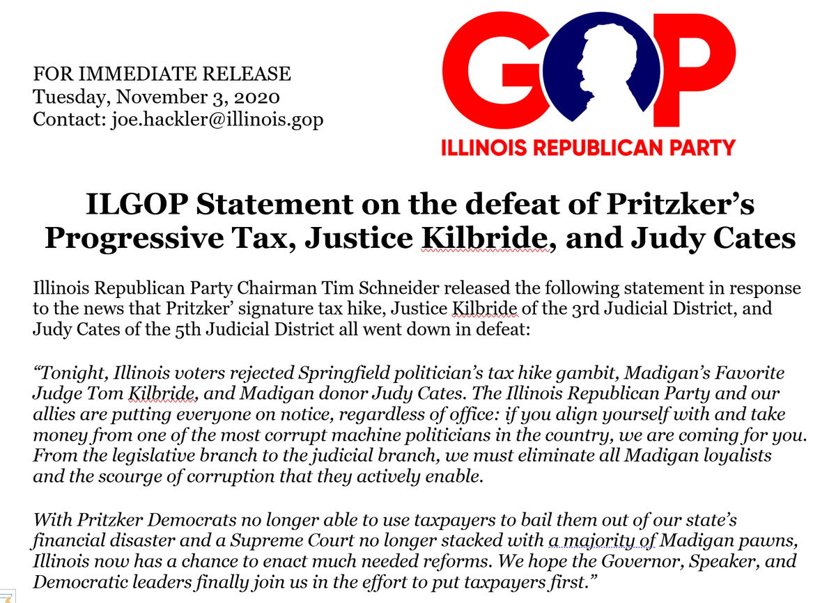 Quentin Fulks, Gov. J.B. Pritzker's so-called Fair Tax chief, concedes defeat: "Now lawmakers must address a multi-billion dollar budget gap without the ability to ask the wealthy to pay their fair share. Fair Tax opponents must answer for whatever comes next.”