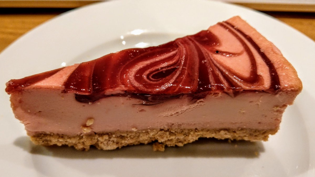 Asda make a Pink Gin Cheesecake, here's a photo of a slice.pic.twitter.com/f3VXNjHzG8
