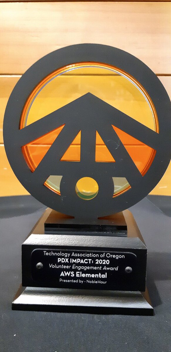 @techoregon for recognizing AWS Elemental with the Volunteer Engagement Award tonight at PDX IMPACT 2020. Congrats to@adpearance,@OrchestraSoft &@FirstTechFed & thank you for your dedication to community investment!#GiveBackPDXpic.twitter.com/7lAW5iv9V9