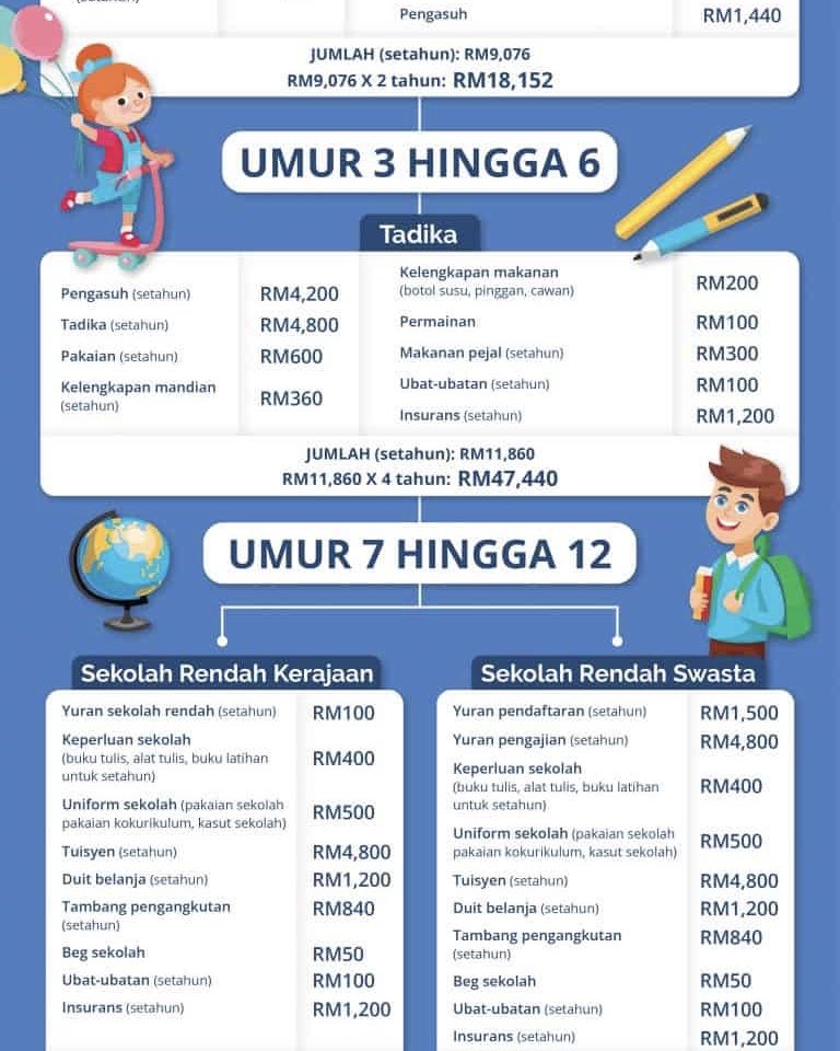 Anggaran kos untuk membesarkan seorang anak dari lahir sampai umur 23 tahun adalah RM280k-540k. Biar betul? Apakah persediaan kita? Untuk ibu bapa dan bakal ibu bapa, ni thread untuk korang.