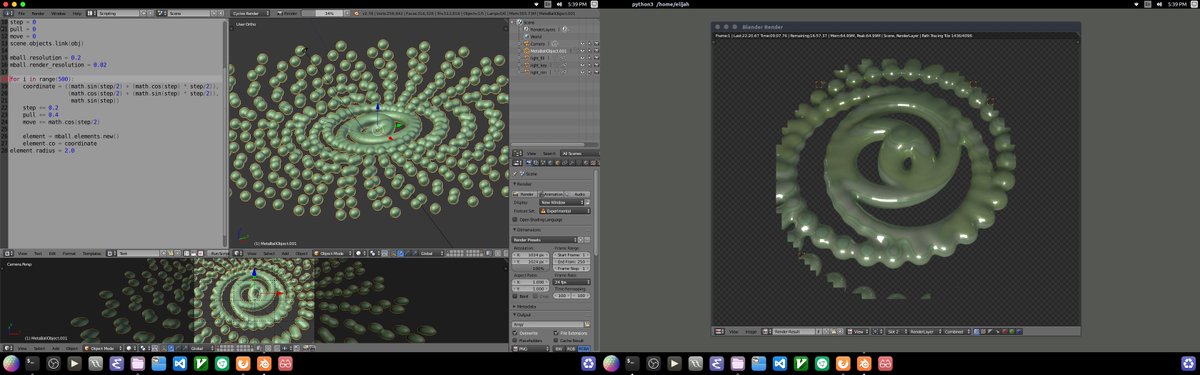 Test render: 3d model generated with a Python script, using metaballs and basic trigonometry.pic.twitter.com/OpKOJgaAbs