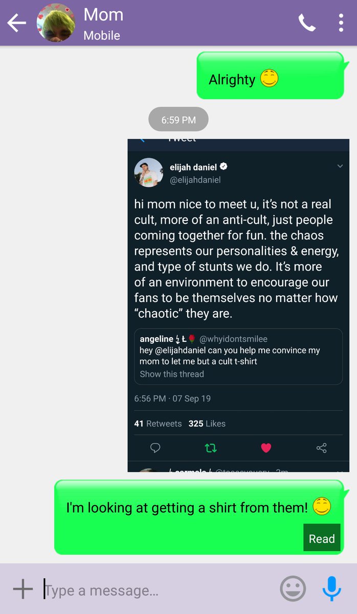 I'M YELLING I HAVE TO TEXT MY MOM NOW